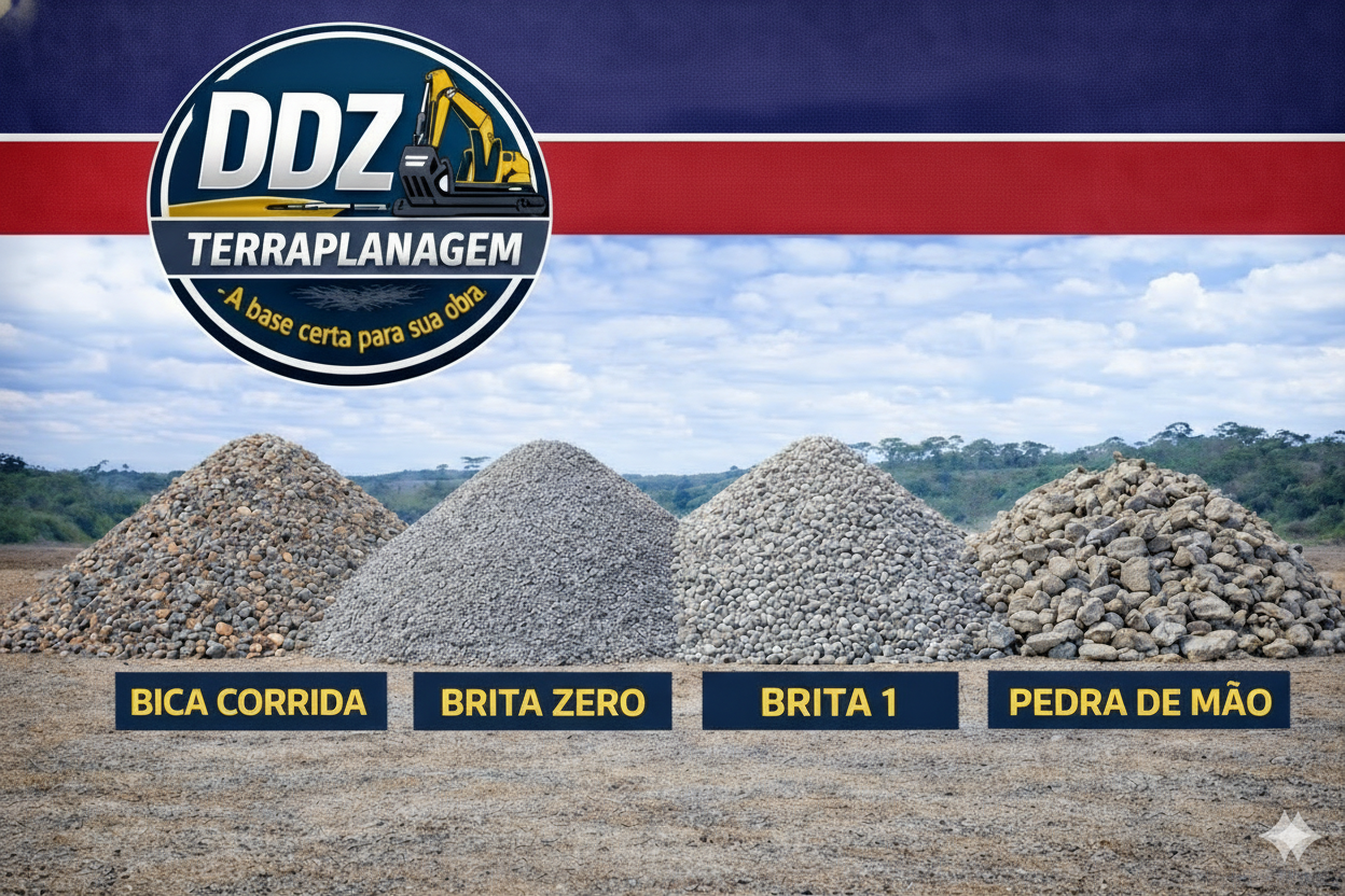 Disponibilizamos para venda: brita 0, brita 1, bica corrida e pedra de mão
